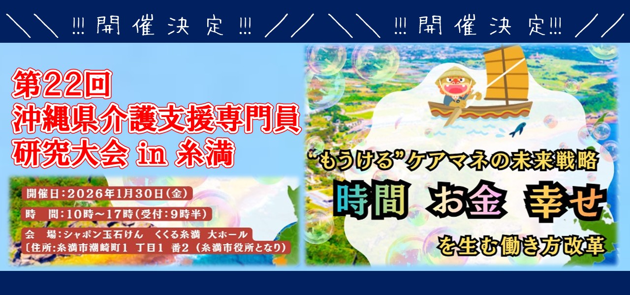 『第22回 沖縄県介護支援専門員研究大会 in 糸満』を開催いたします。
